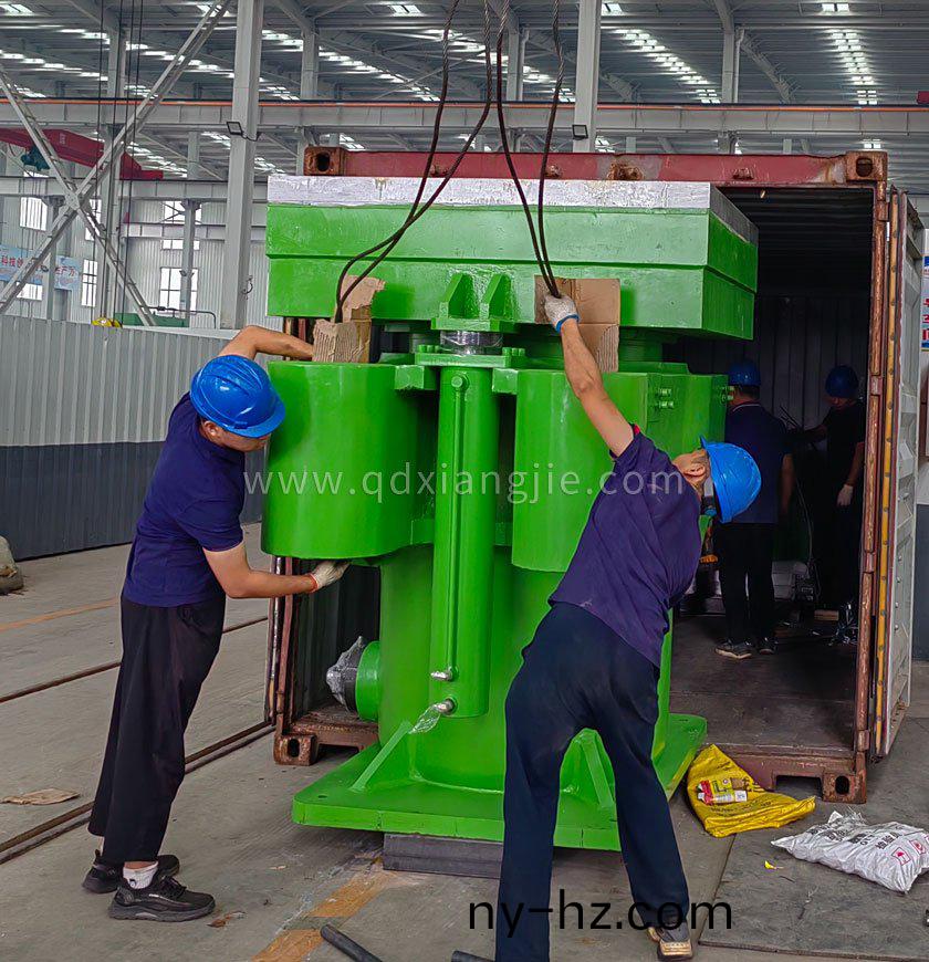 ????????????????悳(de)國大陸(lu)集(ji)糰(tuan)在(zai)我(wo)公司(si)訂購(gou)5檯(tai)立柱(zhu)式實心胎(tai)硫化機,于(yu)2023年9月25日正式裝箱(xiang)髮(fa)貨(huo)。